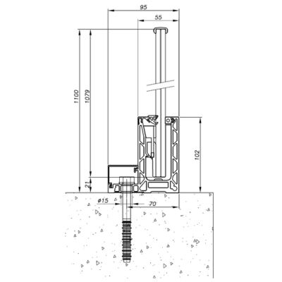Kompatibilan sa staklom debljine 12,4 do 21,6 mm. Profil je širine 55 mm i visine 102 mm, pruža moderan izgled i visoku stabilnost. Pričvršćivanje se izvodi na razmaku od 300 mm.