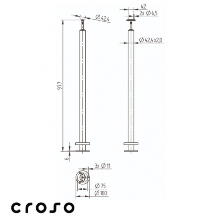 AISI304, Ø42,4 x 2,0 mm, H = 977 mm